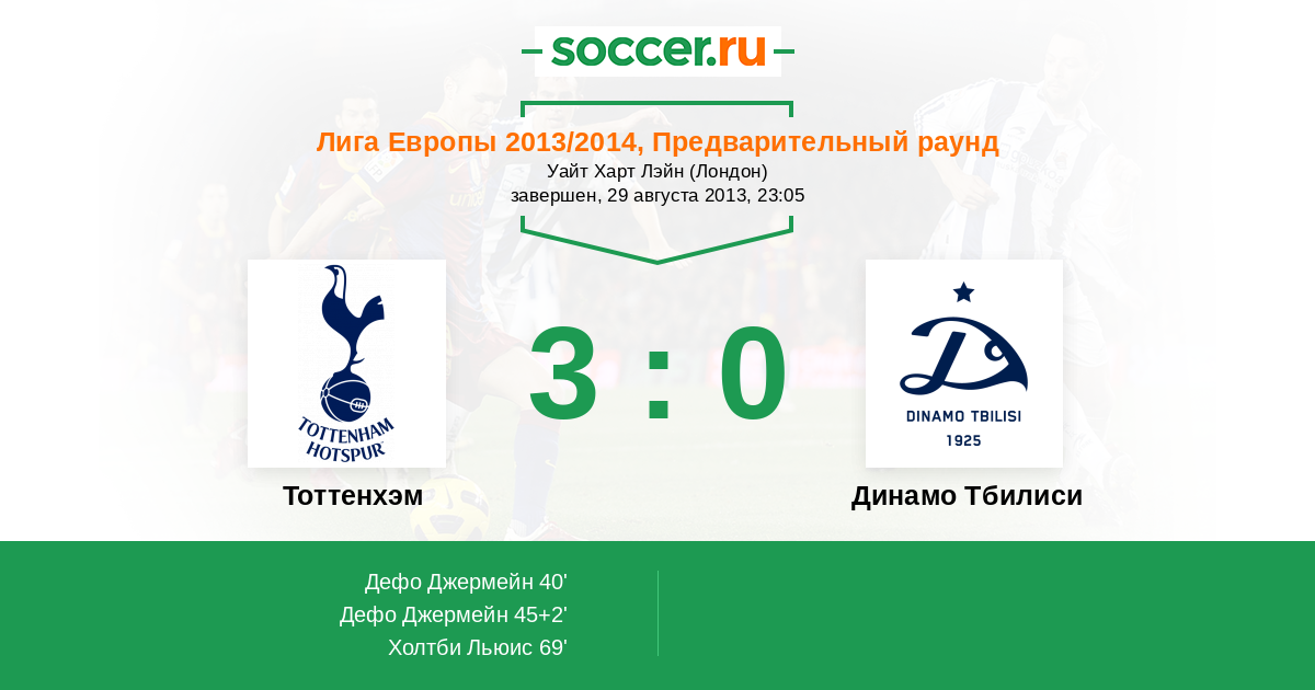 Протокол матча Тоттенхэм против Динамо Тбилиси