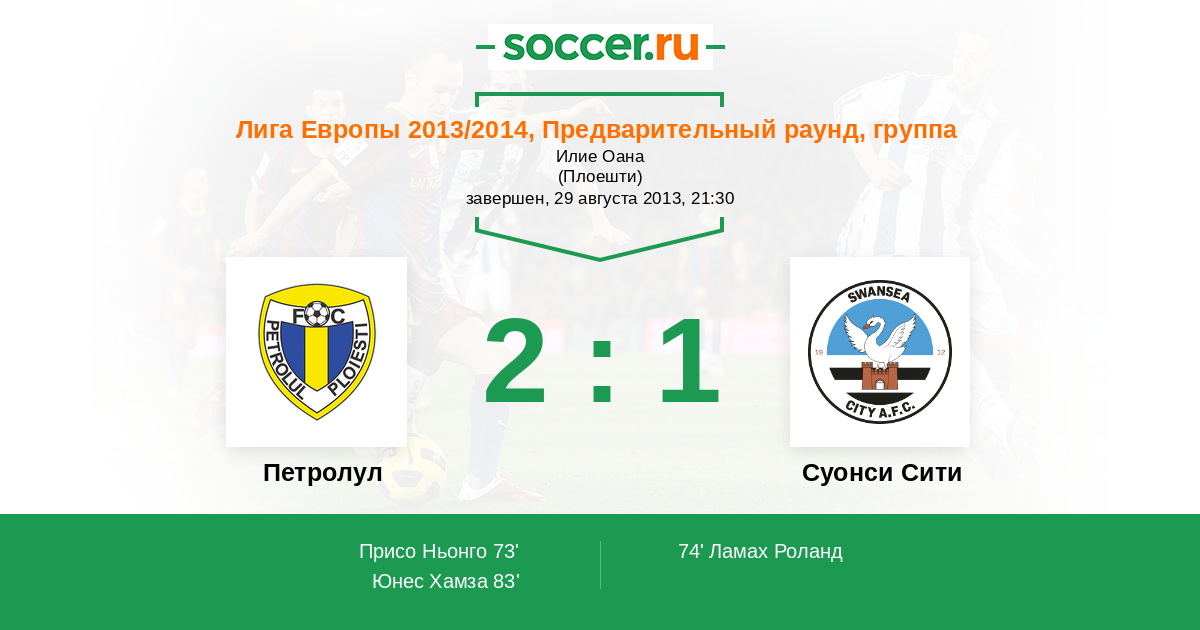 Протокол матча Петролул против Суонси Сити