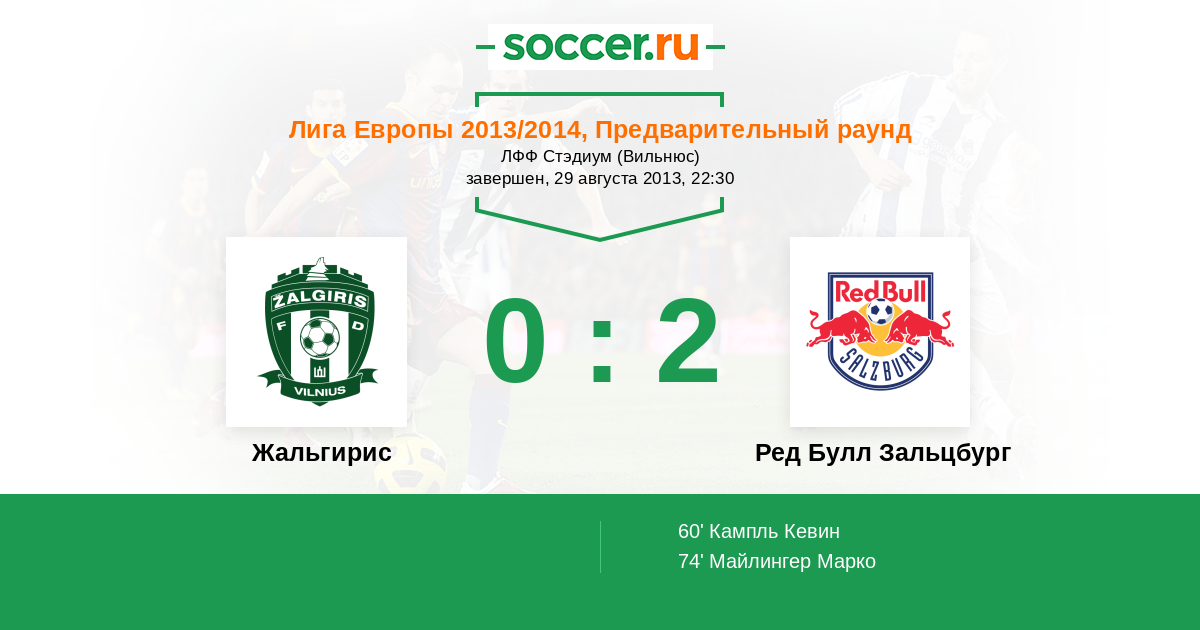 Протокол матча Жальгирис против Ред Булл Зальцбург