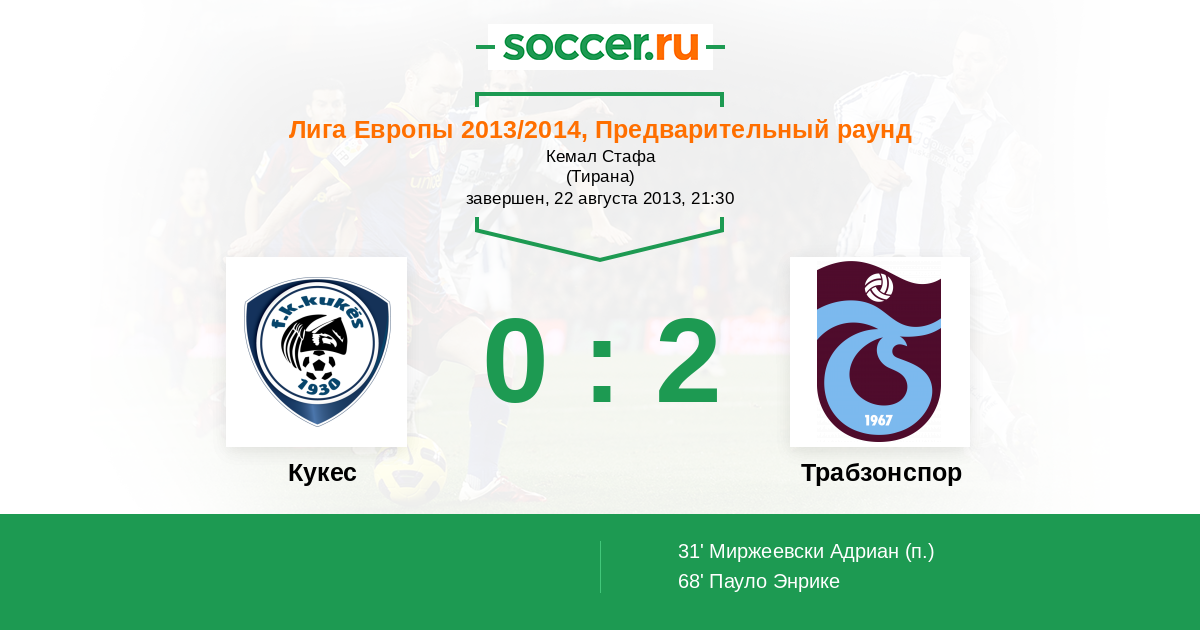 Протокол матча Кукес против Трабзонспор