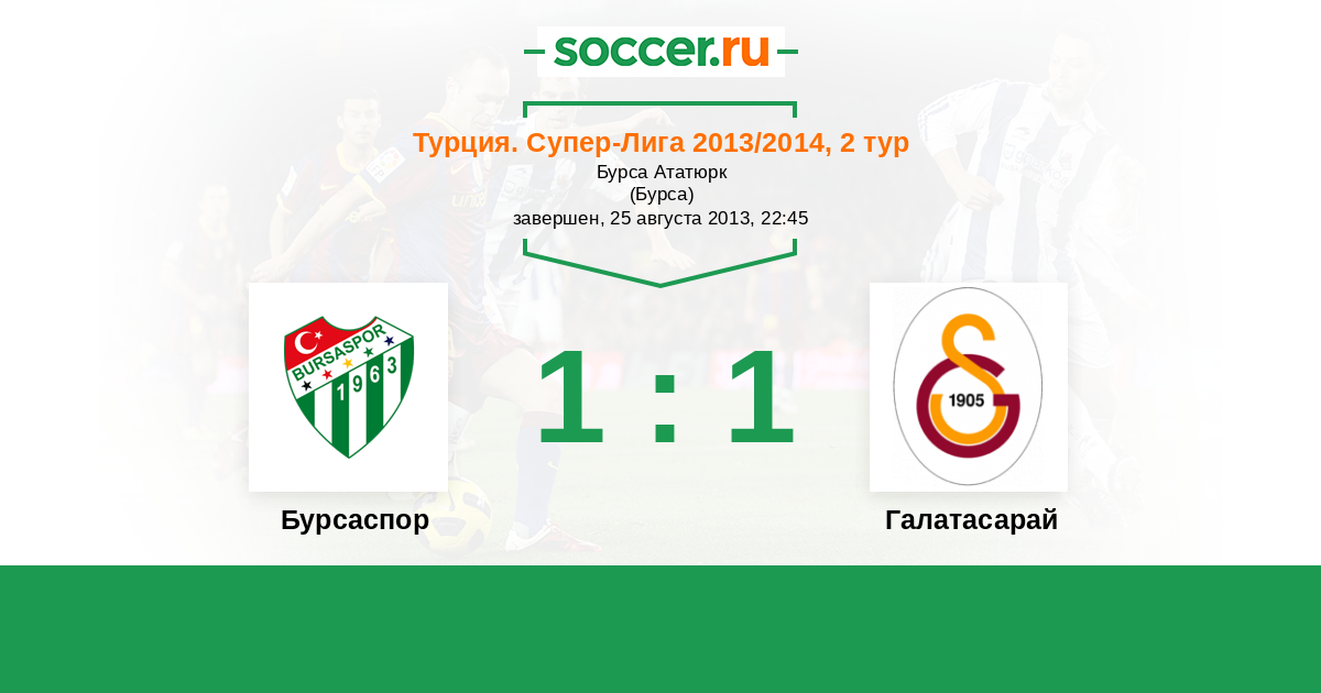 Турция. Суперлига 30.08.2014 Бурсаспор Логотип футбольный клуб Бурсаспор 0:2 Логотип футбольный клуб Галатасарай (Стамбул) Галатасарай