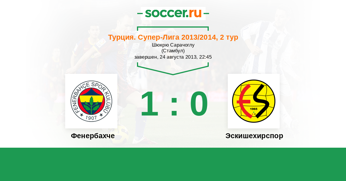 Турция. Суперлига 14.04.2013 Фенербахче Логотип футбольный клуб Фенербахче (Стамбул) 1:0 Логотип футбольный клуб Эскишехирспор Эскишехирспор