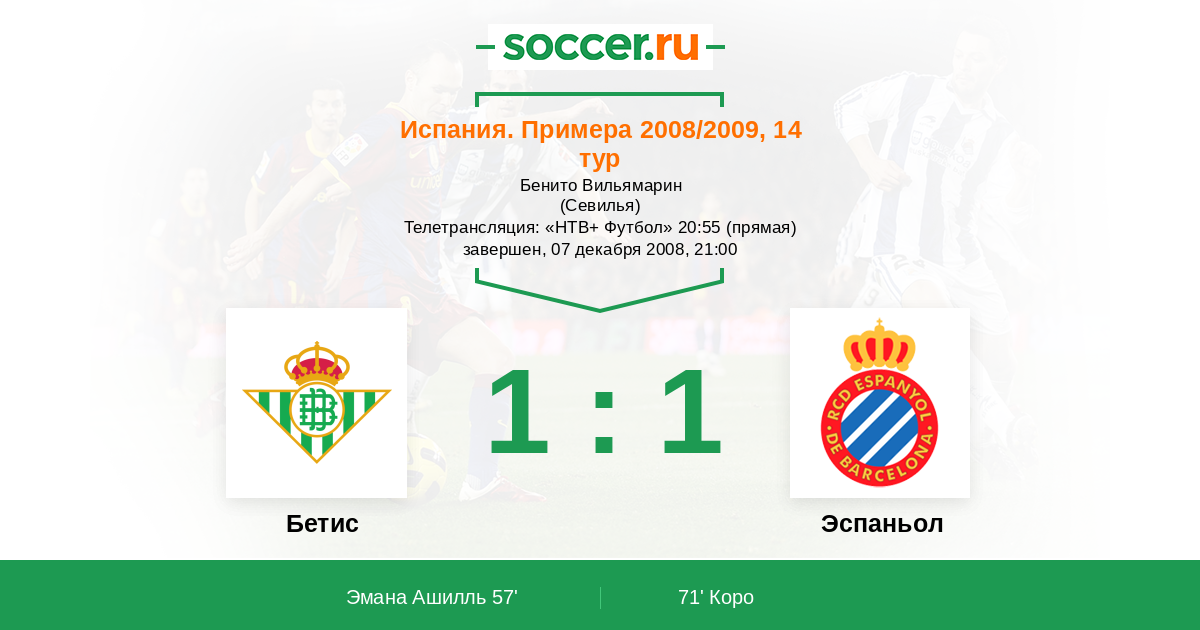 Протокол матча Бетис против Эспаньол