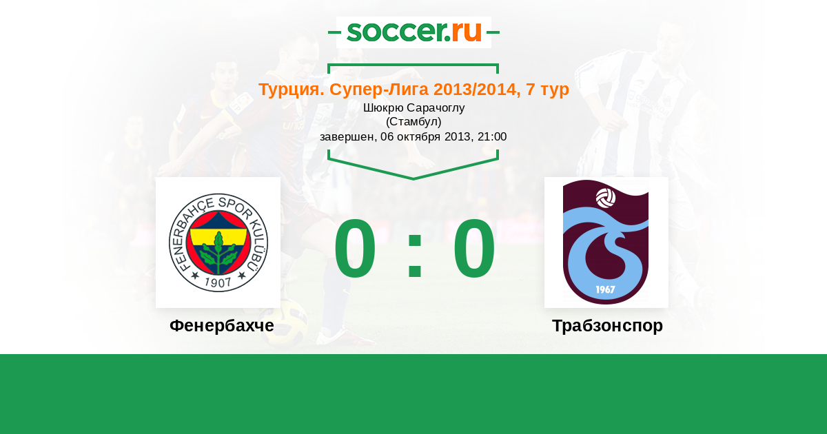 Турция. Суперлига 14.09.2014 Трабзонспор Логотип футбольный клуб Трабзонспор 0:0 Логотип футбольный клуб Фенербахче (Стамбул) Фенербахче