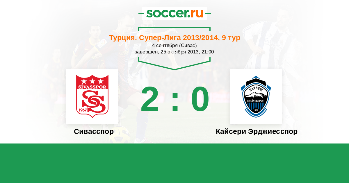 История матча Сивасспор против Кайсери Эрджиесспор