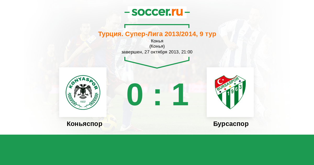 Турция. Суперлига 22.03.2014 Бурсаспор Логотип футбольный клуб Бурсаспор 1:2 Логотип футбольный клуб Коньяспор Коньяспор