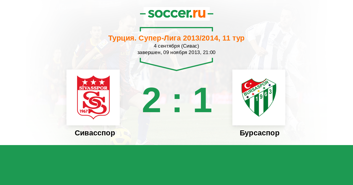 Турция. Суперлига 01.11.2014 Бурсаспор Логотип футбольный клуб Бурсаспор 3:0 Логотип футбольный клуб Сивасспор Сивасспор