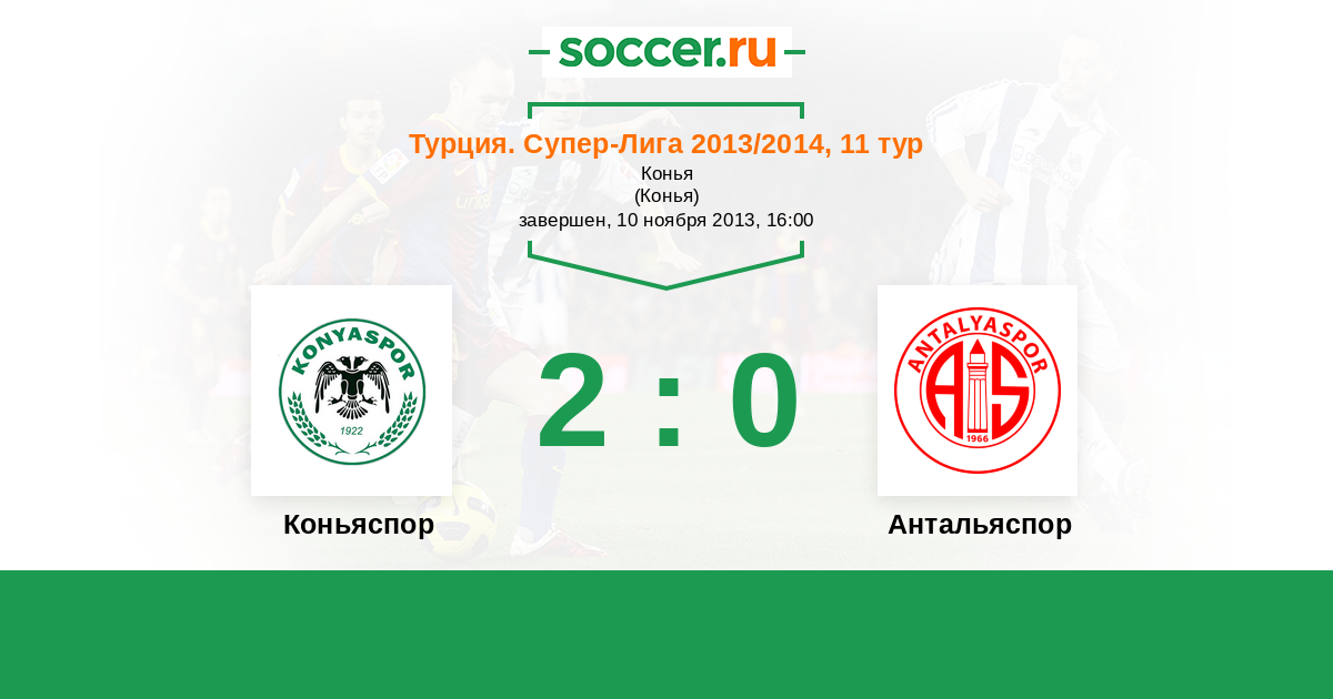 Турция. Суперлига 05.04.2014 Антальяспор Логотип футбольный клуб Антальяспор 1:1 Логотип футбольный клуб Коньяспор Коньяспор