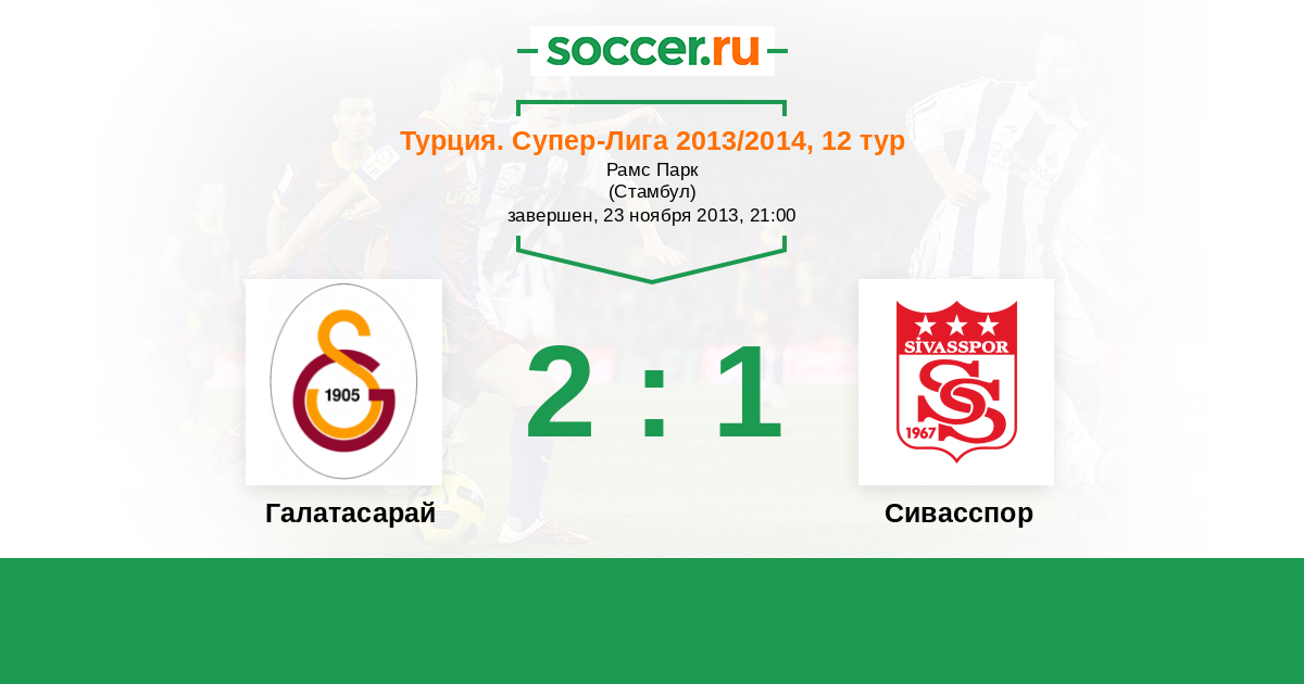 Турция. Суперлига 08.12.2012 Сивасспор Логотип футбольный клуб Сивасспор 1:3 Логотип футбольный клуб Галатасарай (Стамбул) Галатасарай