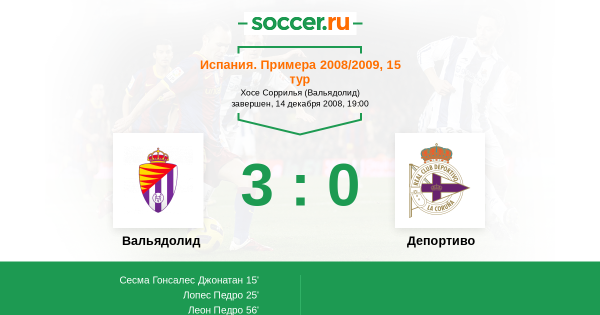 Протокол матча Вальядолид против Депортиво