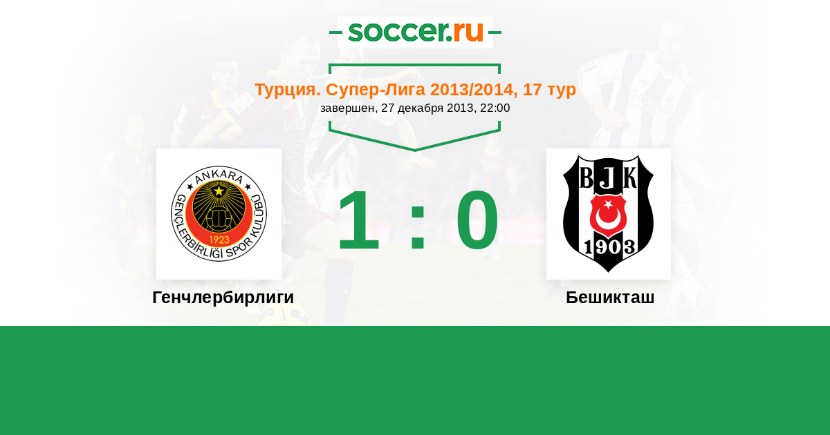 Турция. Суперлига 15.12.2012 Генчлербирлиги Логотип футбольный клуб Генчлербирлиги (Анкара) 1:1 Логотип футбольный клуб Бешикташ (Стамбул) Бешикташ