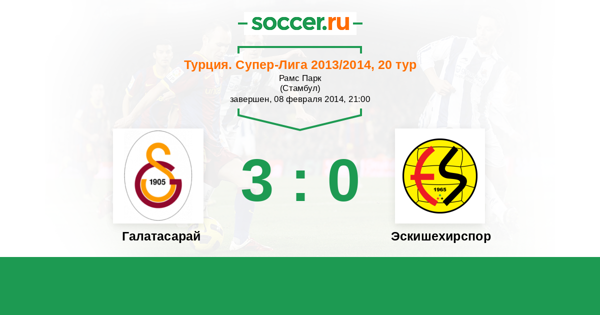 Турция. Суперлига 09.02.2015 Эскишехирспор Логотип футбольный клуб Эскишехирспор 1:2 Логотип футбольный клуб Галатасарай (Стамбул) Галатасарай