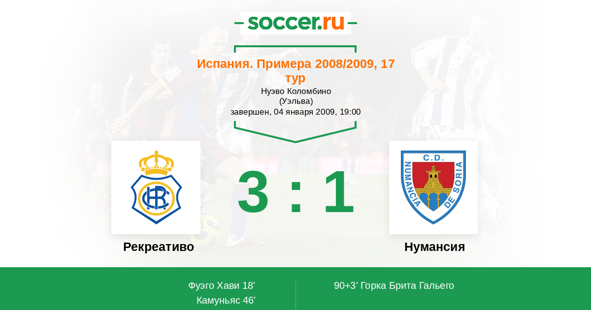 Протокол матча Рекреативо против Нумансия