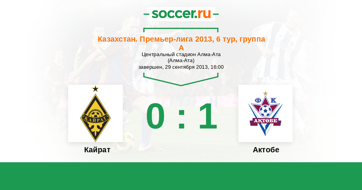 Казахстан. Премьер-лига 11.05.2013 Кайрат Логотип футбольный клуб Кайрат (Алматы) 1:0 Логотип футбольный клуб Актобе Актобе