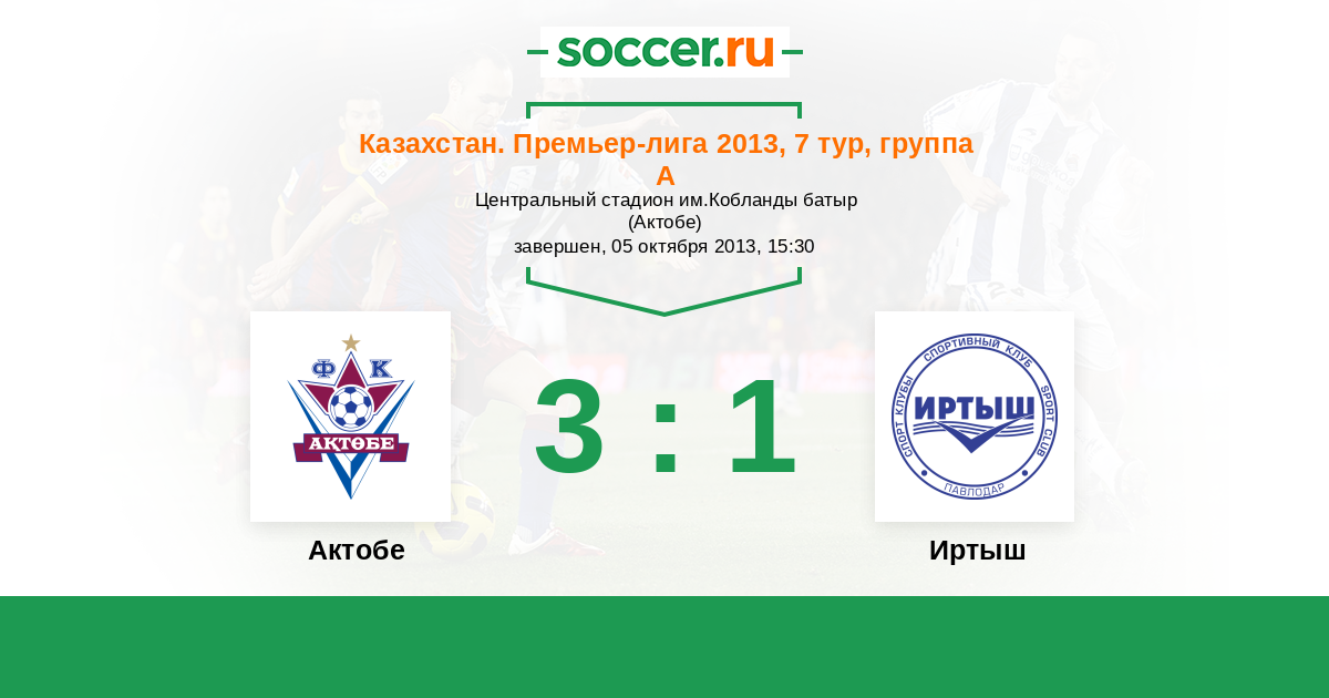 Казахстан. Премьер-лига 30.05.2013 Актобе Логотип футбольный клуб Актобе 3:0 Логотип футбольный клуб Иртыш (Павлодар) Иртыш