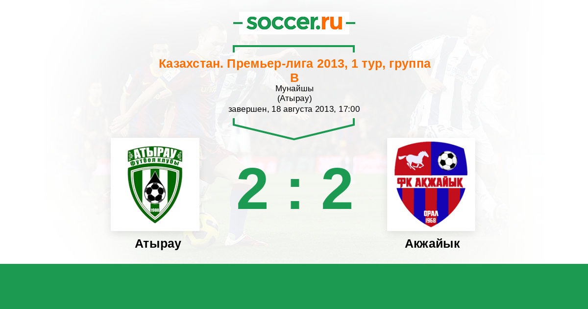 Казахстан. Премьер-лига 18.05.2013 Акжайык Логотип футбольный клуб Акжайык (Уральск) 4:0 Логотип футбольный клуб Атырау Атырау
