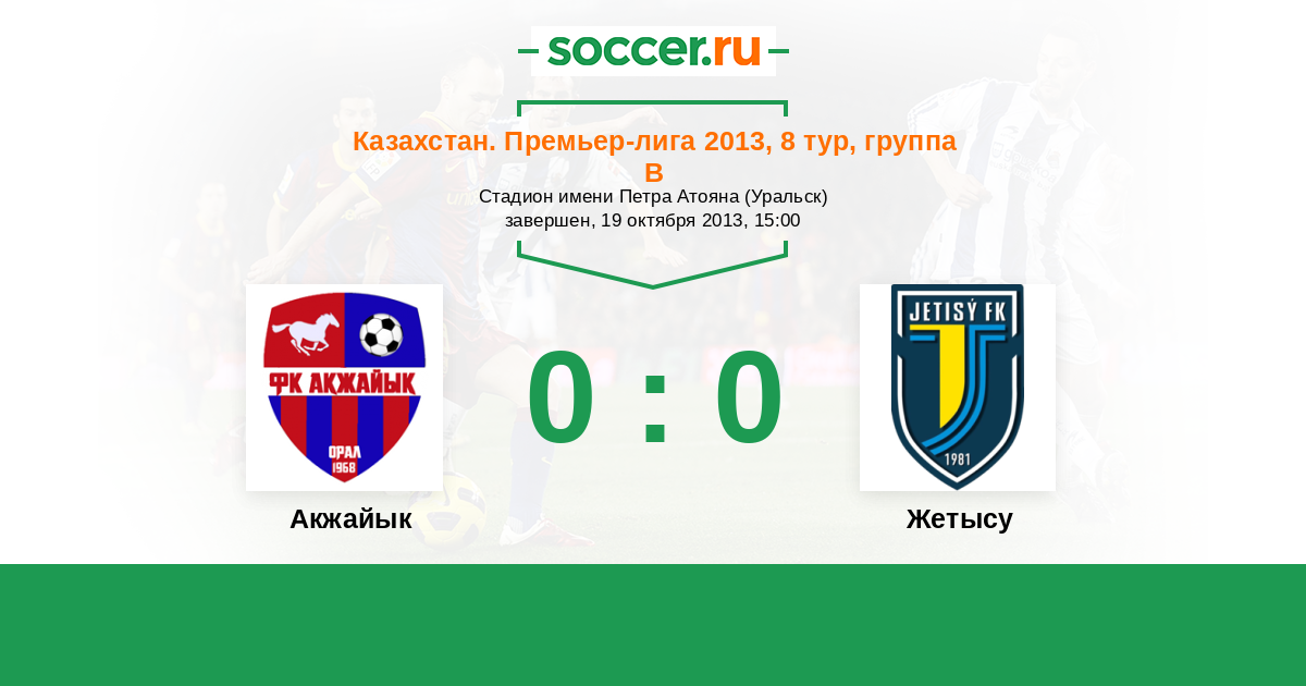 Казахстан. Премьер-лига 29.06.2013 Жетысу Логотип футбольный клуб Жетысу (Талдыкорган) 5:1 Логотип футбольный клуб Акжайык (Уральск) Акжайык