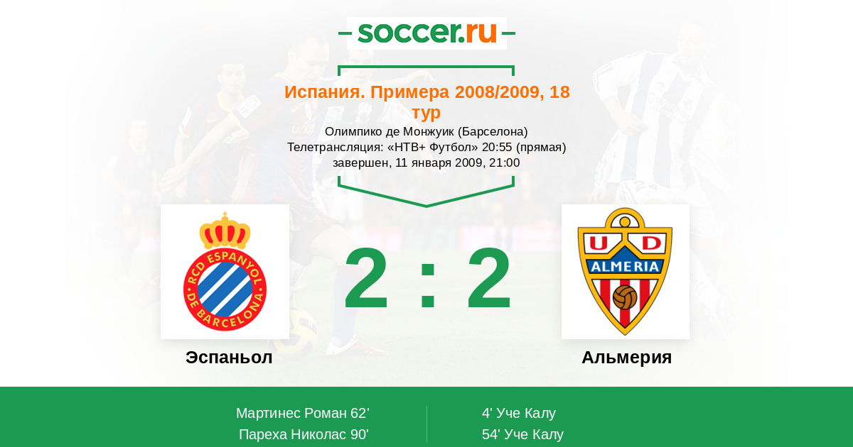 Протокол матча Эспаньол против Альмерия
