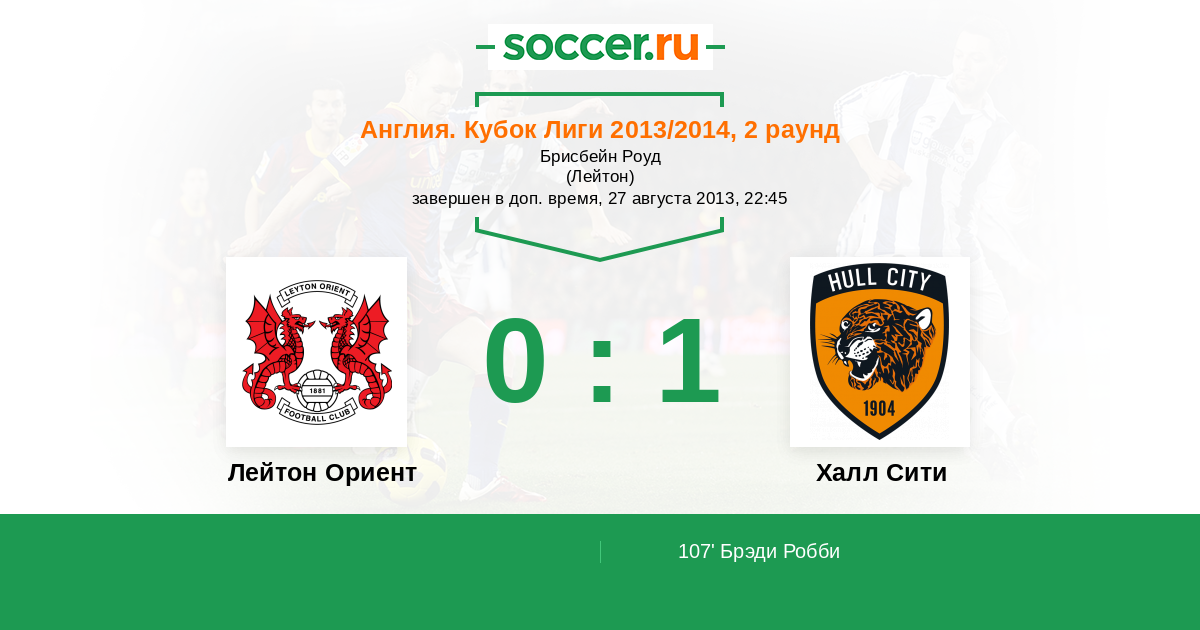 Протокол матча Лейтон Ориент против Халл Сити