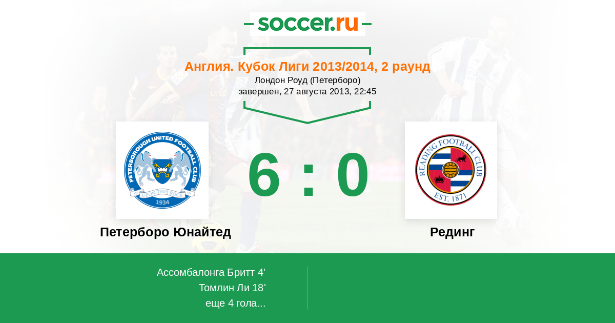 Протокол матча Петерборо Юнайтед против Рединг