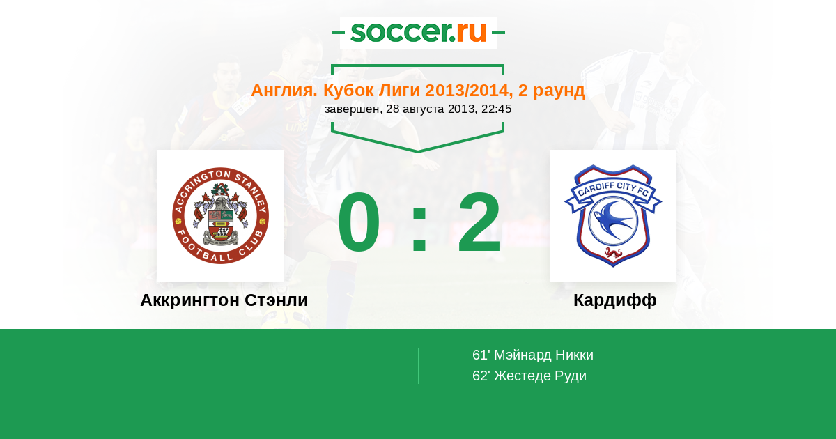 Протокол матча Аккрингтон Стэнли против Кардифф