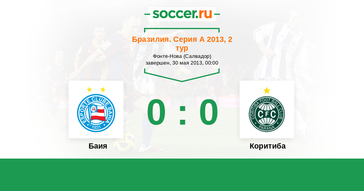Бразилия. Серия А 22.07.2012 Баия Логотип футбольный клуб Баия (Салвадор) 2:2 Логотип футбольный клуб Коритиба Коритиба