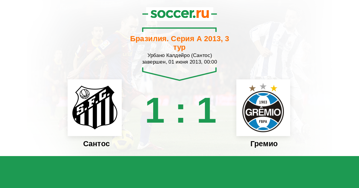 Бразилия. Серия А 19.09.2013 Гремио Логотип футбольный клуб Гремио (Порту-Алегри) 1:1 Логотип футбольный клуб Сантос (Сан-Паулу) Сантос