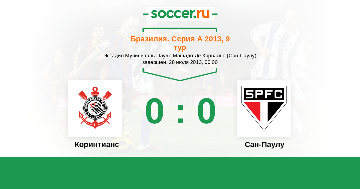 Бразилия. Серия А 13.10.2013 Сан-Паулу Логотип футбольный клуб Сан-Паулу 0:0 Логотип футбольный клуб Коринтианс (Сан-Паулу) Коринтианс