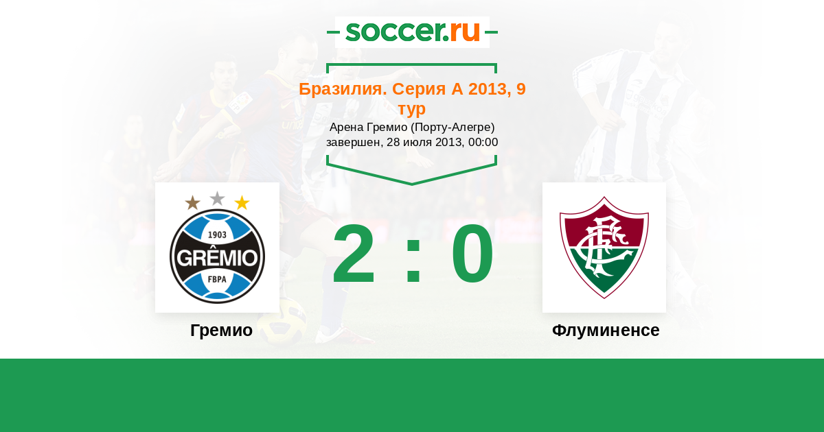 Бразилия. Серия А 13.10.2013 Флуминенсе Логотип футбольный клуб Флуминенсе (Рио-де-Жанейро) 1:1 Логотип футбольный клуб Гремио (Порту-Алегри) Гремио