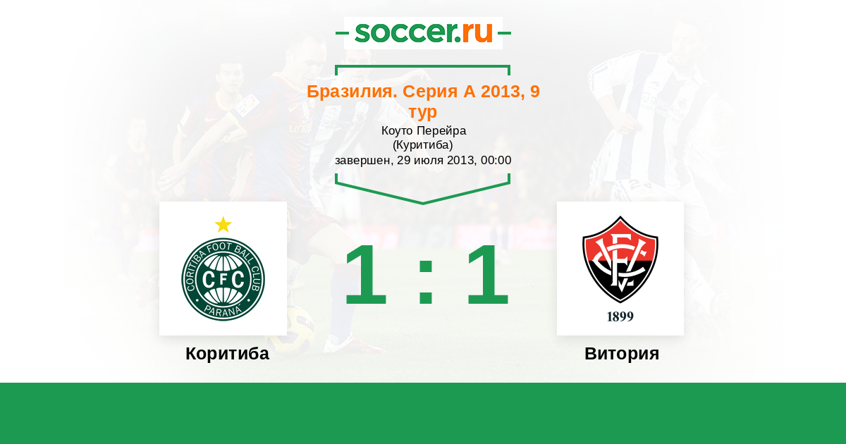Бразилия. Серия А 13.10.2013 Витория Логотип футбольный клуб Витория (Сальвадор) 2:1 Логотип футбольный клуб Коритиба Коритиба