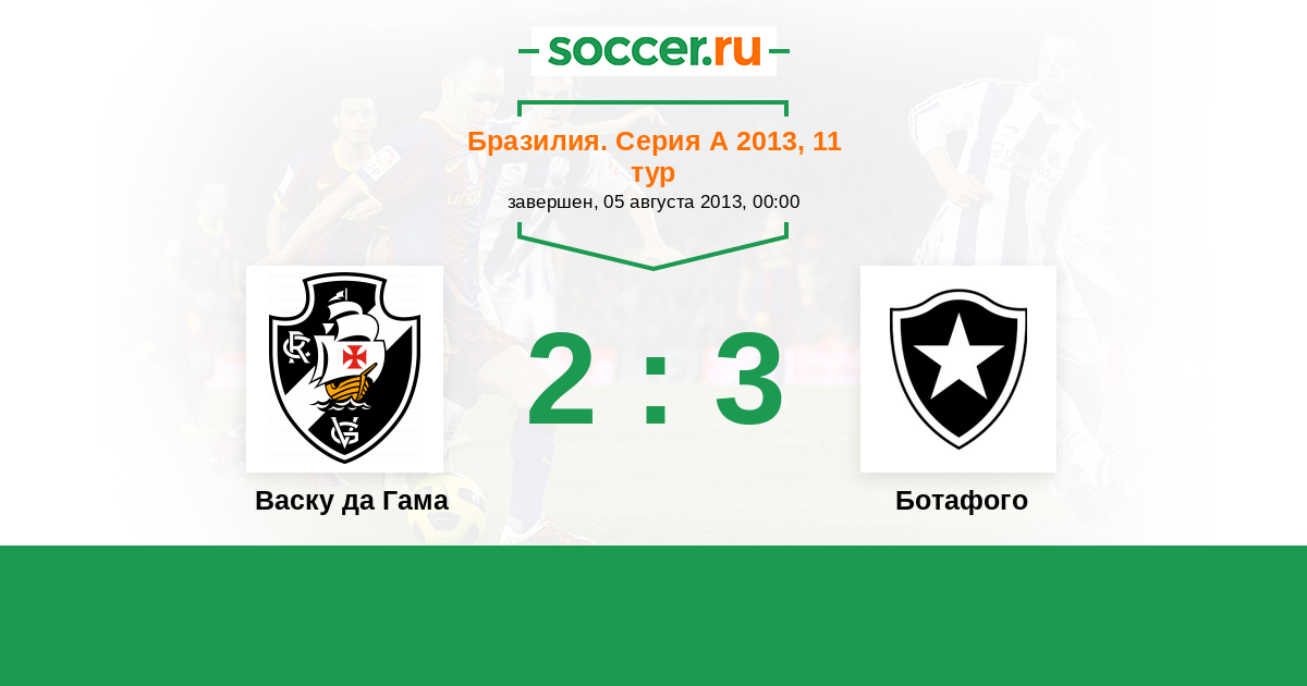 Бразилия. Серия А 21.10.2013 Ботафого Логотип футбольный клуб Ботафого (Рио-де-Жанейро) 2:2 Логотип футбольный клуб Васку да Гама (Рио-де-Жанейро) Васку да Гама