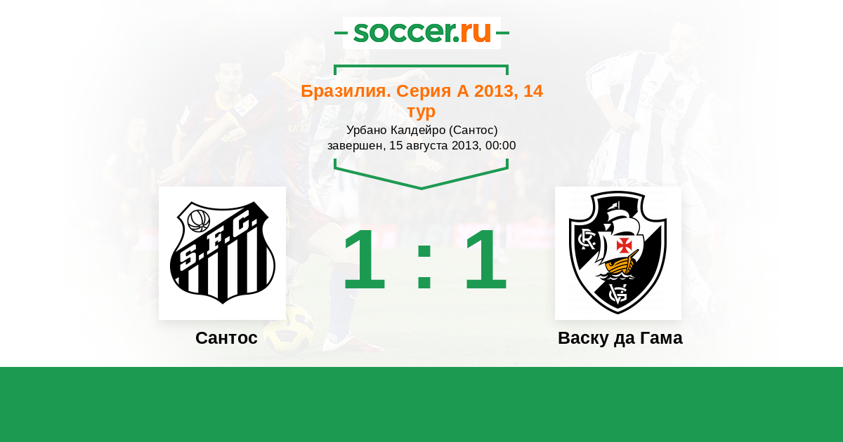Бразилия. Серия А 13.08.2015 Сантос Логотип футбольный клуб Сантос (Сан-Паулу) 1:0 Логотип футбольный клуб Васку да Гама (Рио-де-Жанейро) Васку да Гама