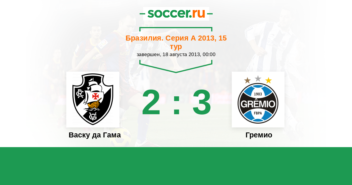 Бразилия. Серия А 12.07.2015 Гремио Логотип футбольный клуб Гремио (Порту-Алегри) 2:0 Логотип футбольный клуб Васку да Гама (Рио-де-Жанейро) Васку да Гама