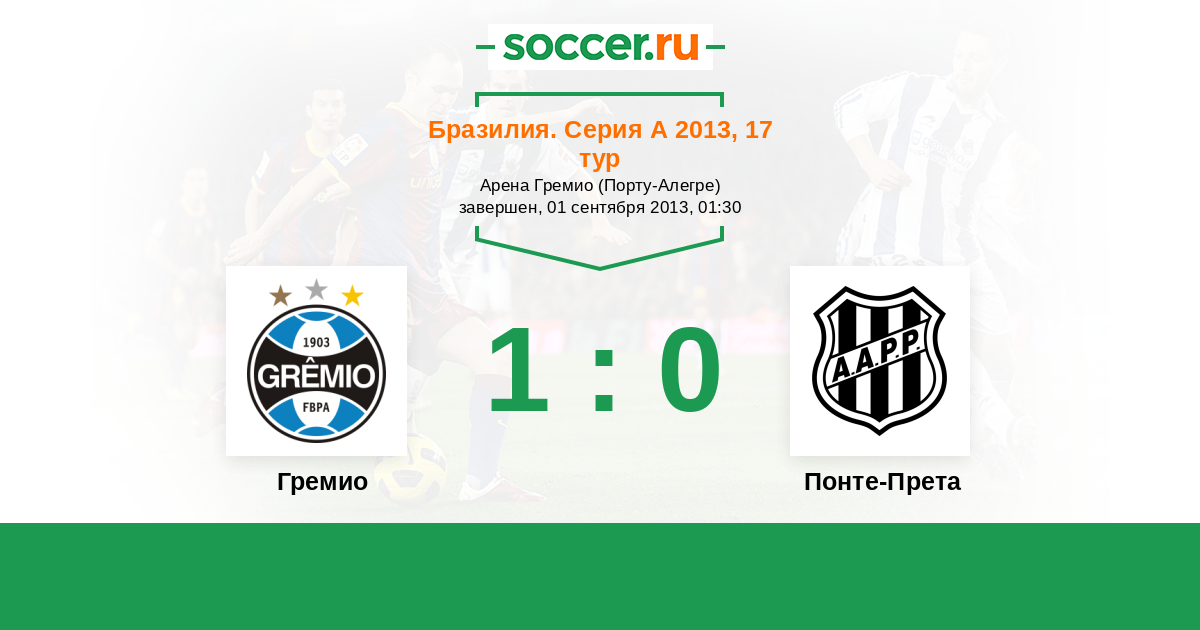 Бразилия. Серия А 24.11.2013 Понте-Прета Логотип футбольный клуб Понте-Прета (Кампинас) 1:1 Логотип футбольный клуб Гремио (Порту-Алегри) Гремио