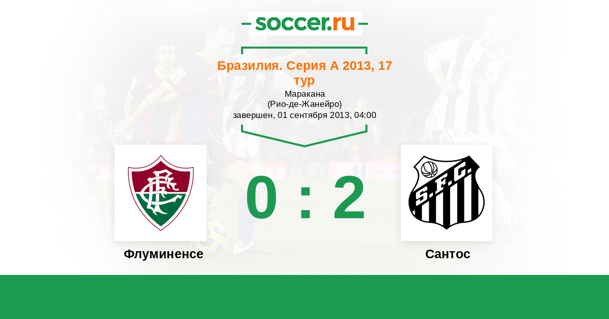 Бразилия. Серия А 23.06.2016 Флуминенсе Логотип футбольный клуб Флуминенсе (Рио-де-Жанейро) 2:4 Логотип футбольный клуб Сантос (Сан-Паулу) Сантос