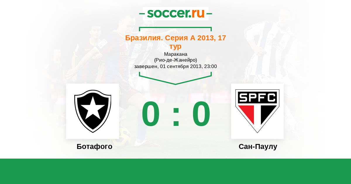 Бразилия. Серия А 11.09.2014 Ботафого Логотип футбольный клуб Ботафого (Рио-де-Жанейро) 2:4 Логотип футбольный клуб Сан-Паулу Сан-Паулу
