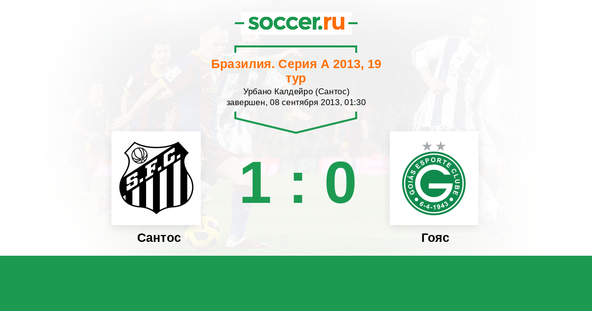 Бразилия. Серия А 29.09.2014 Сантос Логотип футбольный клуб Сантос (Сан-Паулу) 2:0 Логотип футбольный клуб Гояс (Гояния) Гояс