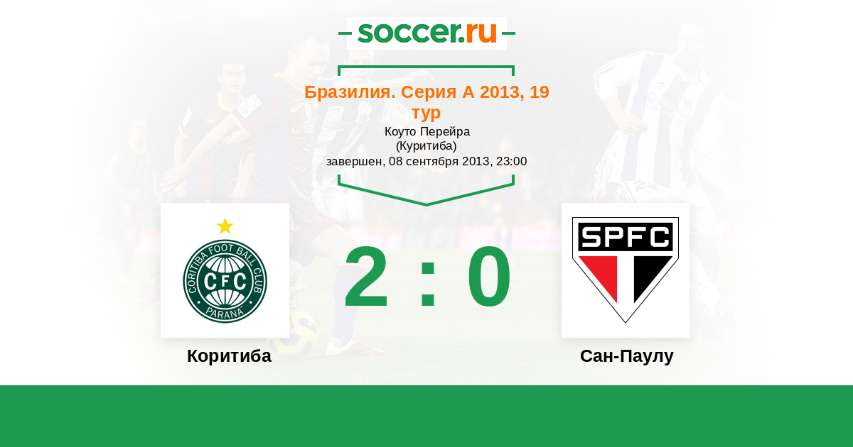 Бразилия. Серия А 08.12.2013 Сан-Паулу Логотип футбольный клуб Сан-Паулу 0:1 Логотип футбольный клуб Коритиба Коритиба