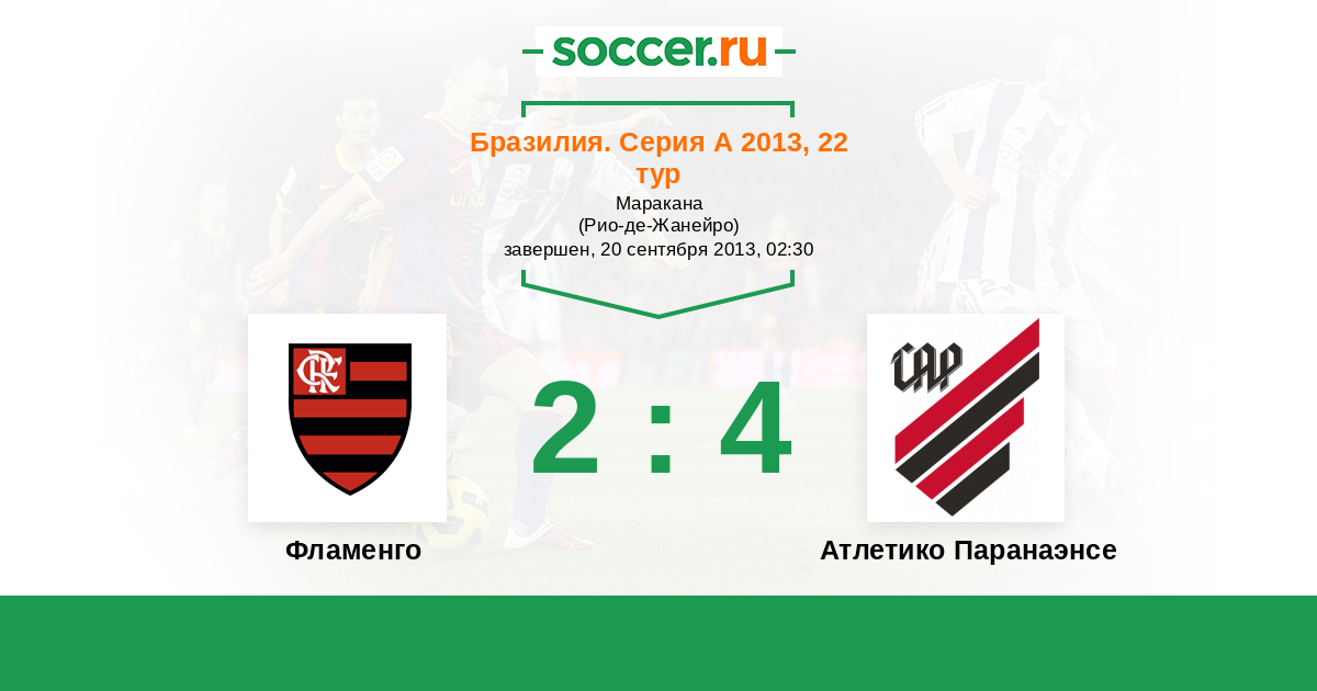 Бразилия. Серия А 17.07.2014 Фламенго Логотип футбольный клуб Фламенго (Рио-де-Жанейро) 1:2 Логотип футбольный клуб Атлетико Паранаэнсе (Куритиба) Атлетико Паранаэнсе