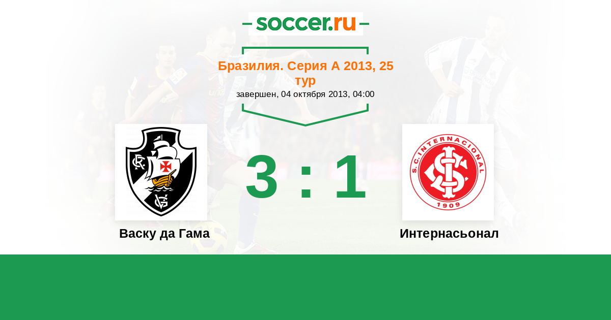 Бразилия. Серия А 07.07.2013 Интернасьонал Логотип футбольный клуб Интернасьонал (Порту-Алегри) 5:3 Логотип футбольный клуб Васку да Гама (Рио-де-Жанейро) Васку да Гама