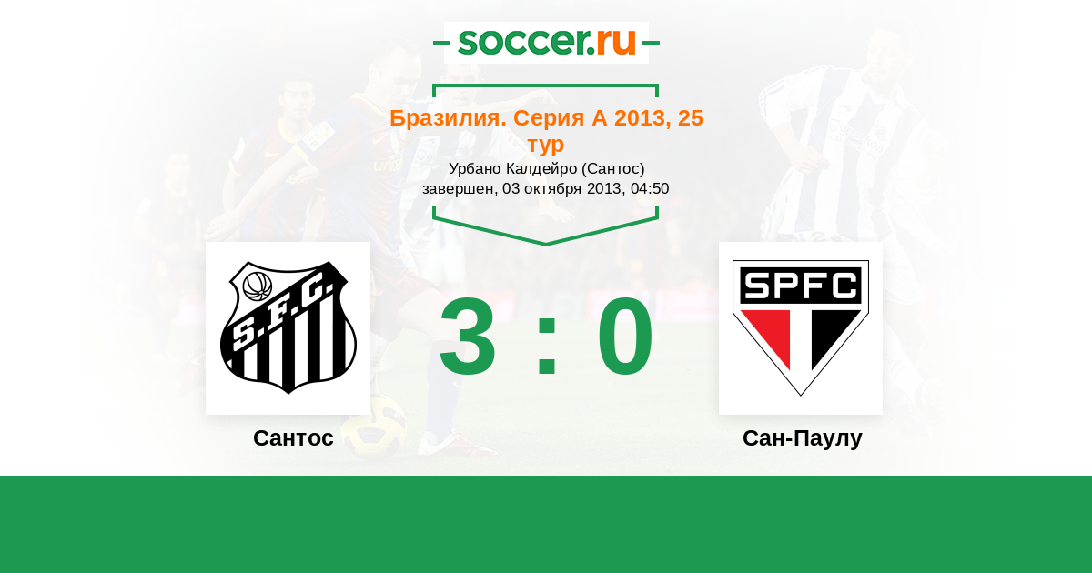 Бразилия. Серия А 07.07.2013 Сан-Паулу Логотип футбольный клуб Сан-Паулу 0:2 Логотип футбольный клуб Сантос (Сан-Паулу) Сантос