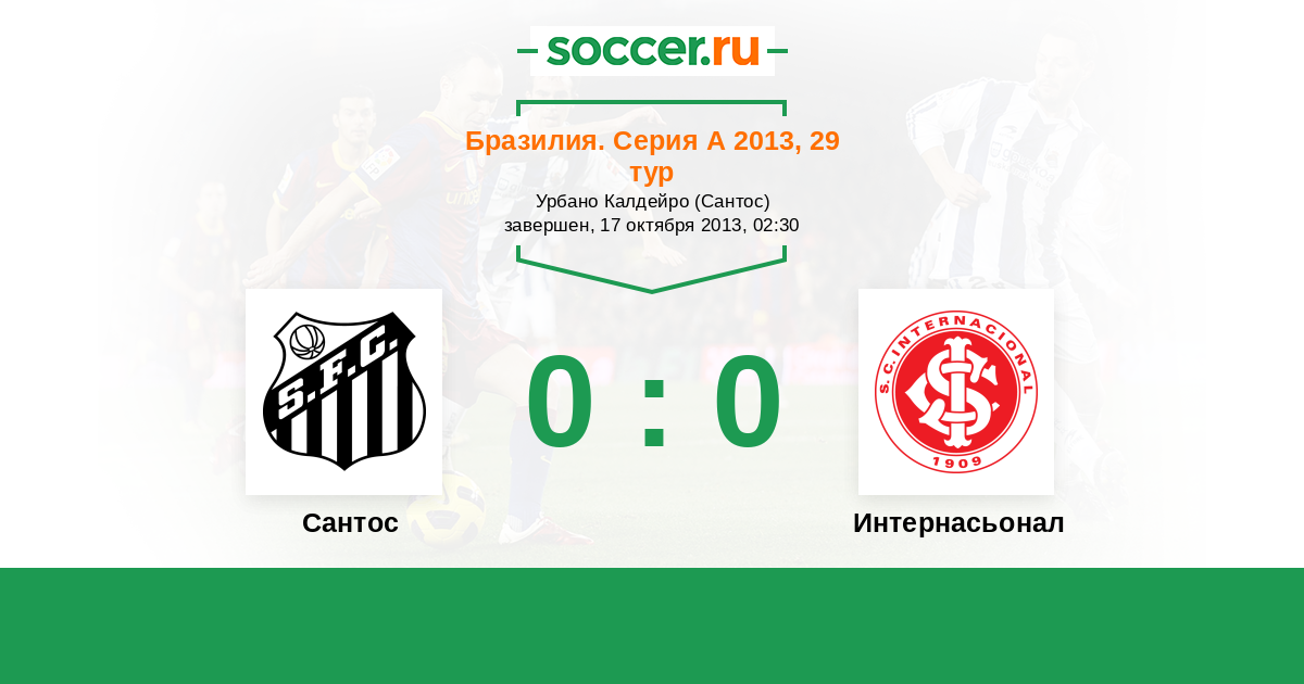 Бразилия. Серия А 06.10.2012 Сантос Логотип футбольный клуб Сантос (Сан-Паулу) 1:1 Логотип футбольный клуб Интернасьонал (Порту-Алегри) Интернасьонал