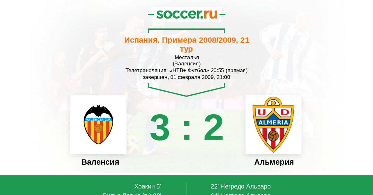 Протокол матча Валенсия против Альмерия