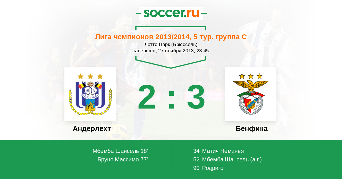 Протокол матча Андерлехт против Бенфика