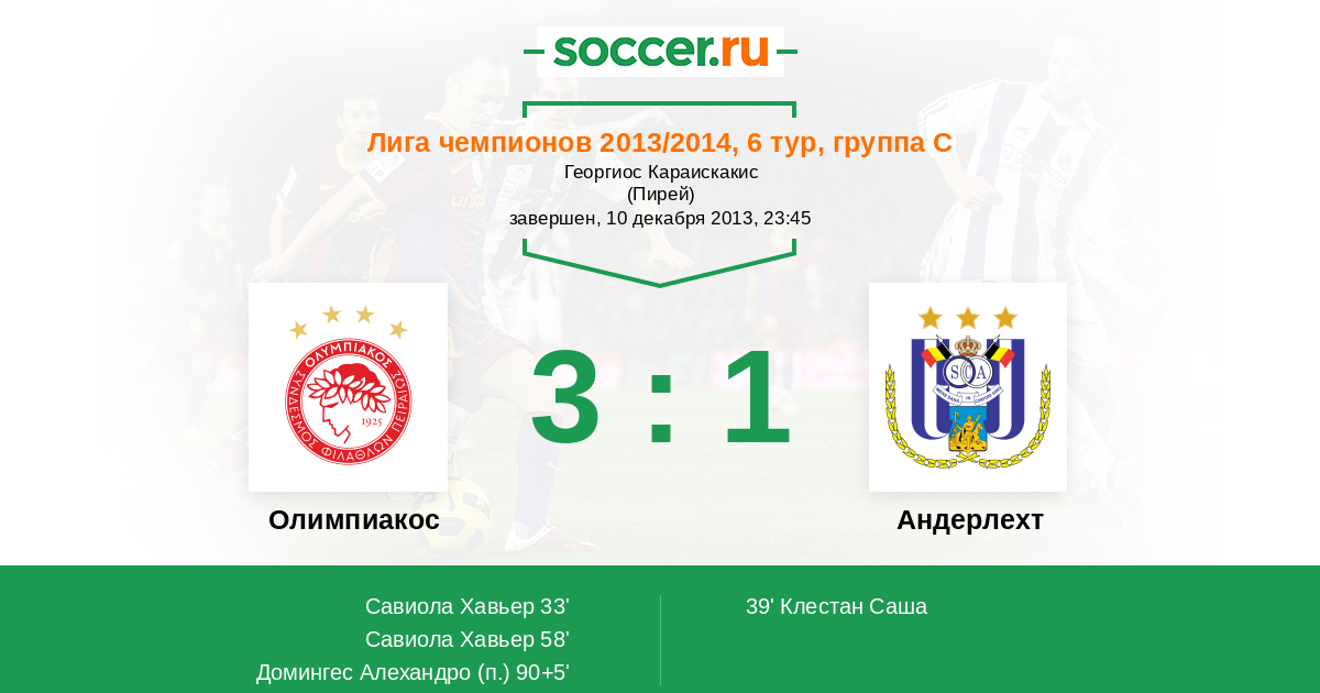 Протокол матча Олимпиакос против Андерлехт