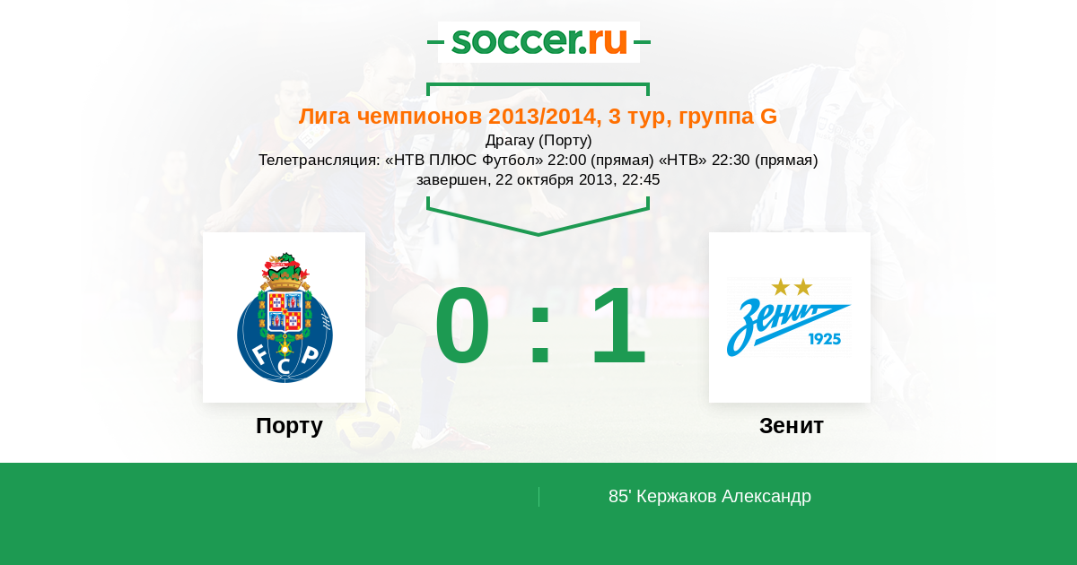 Протокол матча Порту против Зенит