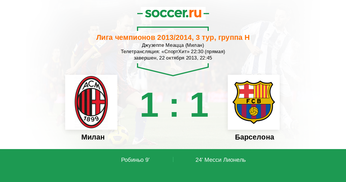 Протокол матча Милан против Барселона