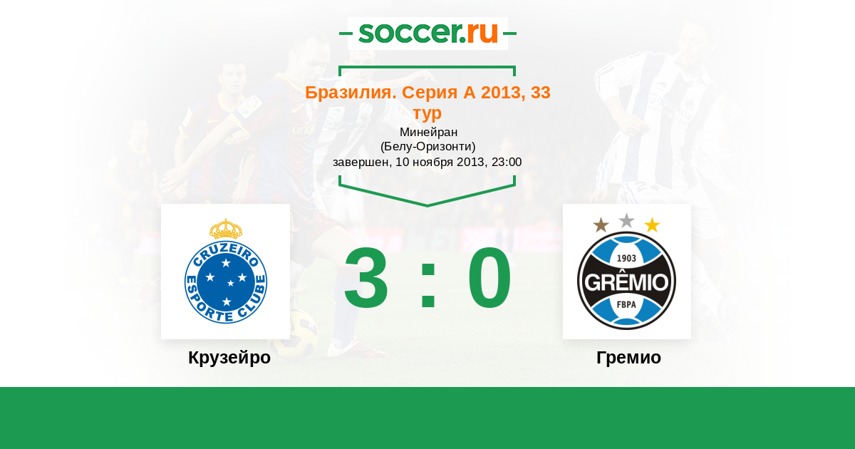 Бразилия. Серия А 15.08.2013 Гремио Логотип футбольный клуб Гремио (Порту-Алегри) 3:1 Логотип футбольный клуб Крузейро (Белу-Оризонти) Крузейро
