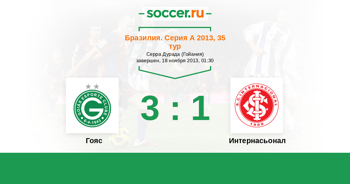Бразилия. Серия А 26.08.2013 Интернасьонал Логотип футбольный клуб Интернасьонал (Порту-Алегри) 3:3 Логотип футбольный клуб Гояс (Гояния) Гояс