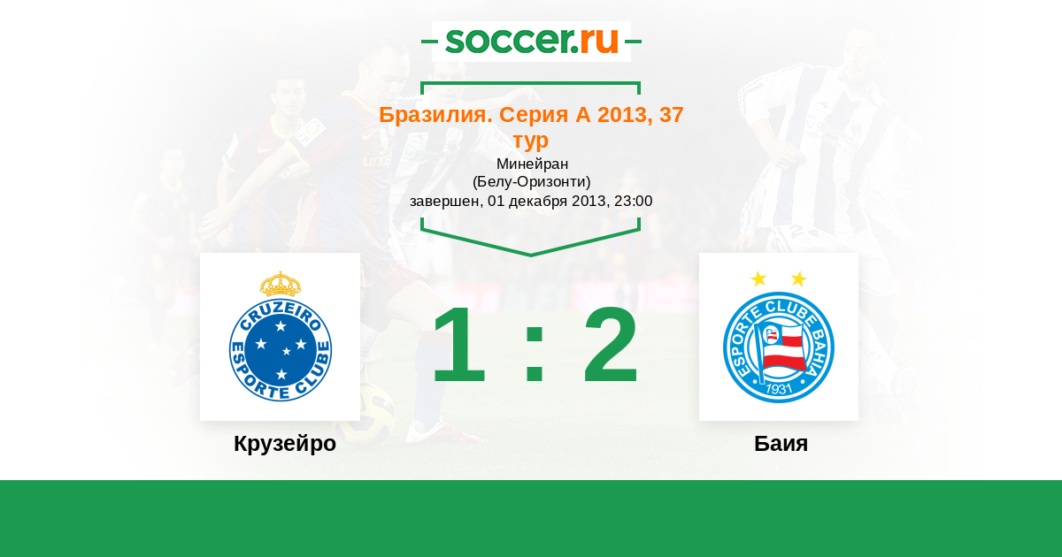 Бразилия. Серия А 05.09.2013 Баия Логотип футбольный клуб Баия (Салвадор) 1:3 Логотип футбольный клуб Крузейро (Белу-Оризонти) Крузейро